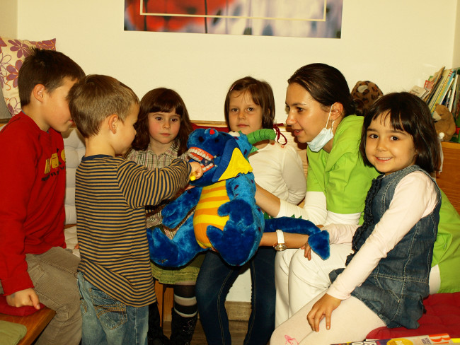 Wir organisieren ein Mal im Monat an einem Nachmittag einen kostenlosen Workshop mit maximal 6 Kindern. Spielerisch lernen die Kinder die 3 Hauptsäulen der Zahngesundheit in ihrem Alter kennen: